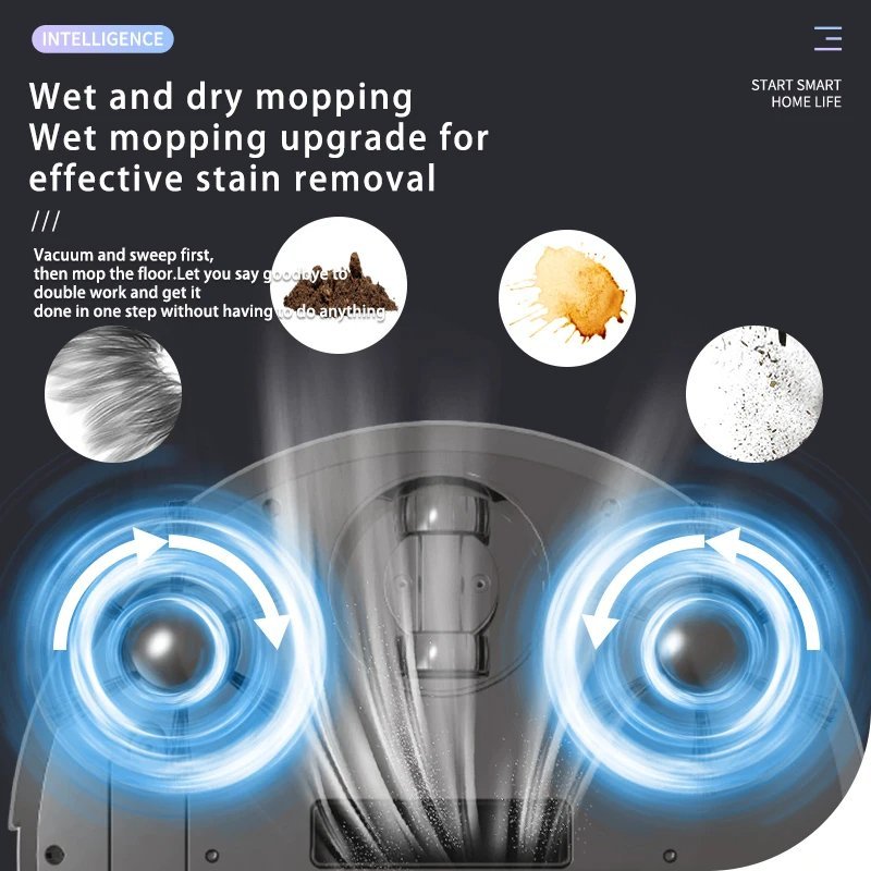 المكنسة الذكية تجمع بين التنظيف الشامل بالكنس والجلي الجاف والرطب، لتوفير تنظيف فعال وسهل بخطوة واحدة فقط.